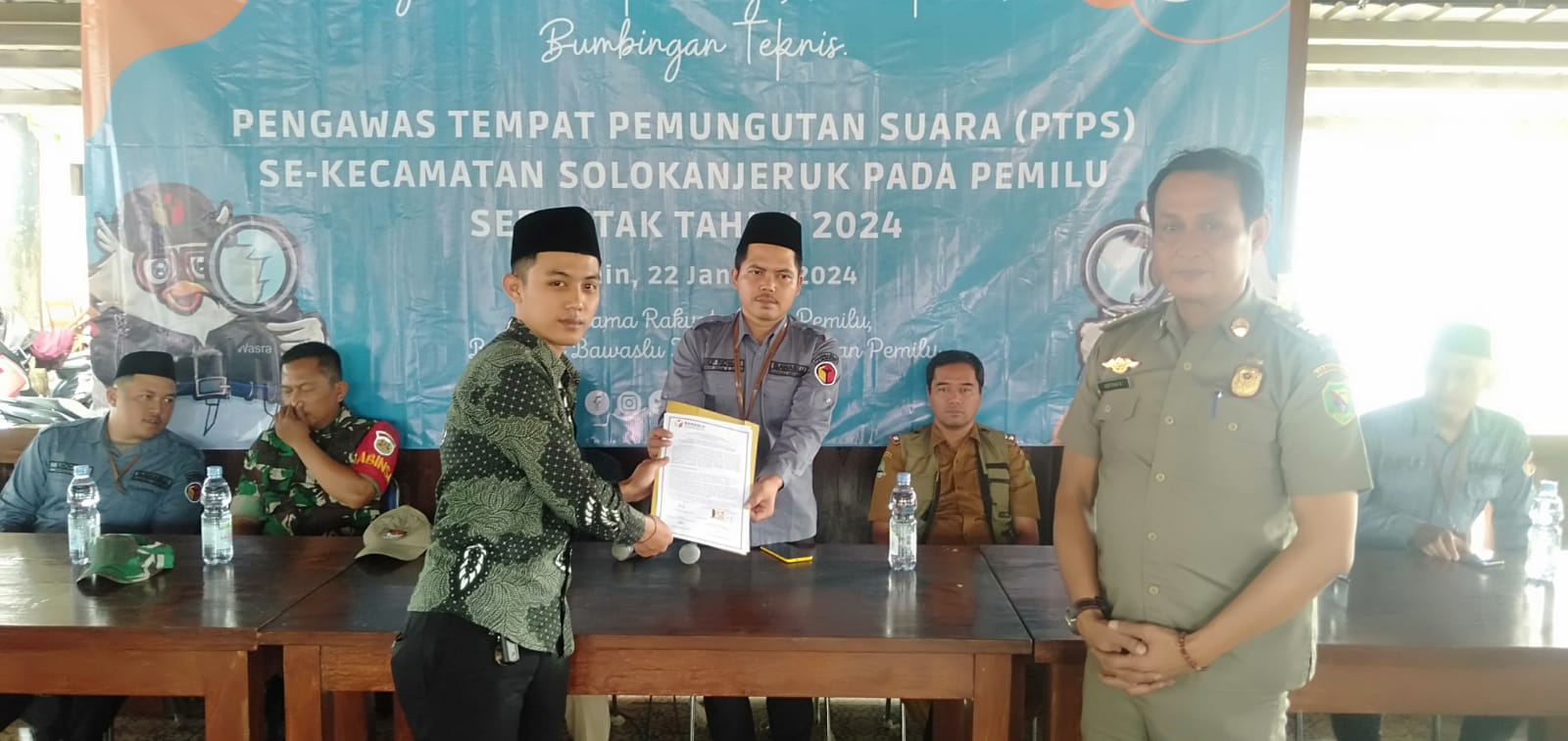 Acara tersebut di hadiri Ketua serta Anggota Panwaslu Kecamatan Selokanjeruk, Camat Kecamatan Solokanjeruk, Polsek Kecamatan Selokanjeruk, Babinsa Koramil 2404/Majalaya, Kepala Desa Solokanjeruk, Serta Panitia