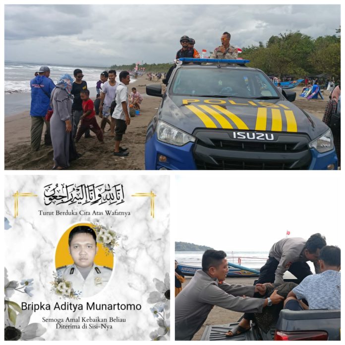 Kabarjabar.Net.Pangandaran, 3 Januari 2025 – Bripka Anditya Munartono (35), anggota Polsek Pagerageung, Polres Tasikmalaya Kota, gugur saat menjalankan tugas heroiknya menyelamatkan seorang wisatawan di Pantai Pangandaran. Peristiwa nahas ini terjadi pada Jumat (3/1) sore sekitar pukul 15.30 WIB, di depan Hotel Century, Pos 4 Penjaga Pantai Dusun Karangsari, Desa Pananjung, Kecamatan Pangandaran, Kabupaten Pangandaran.