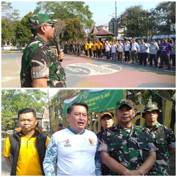 Pada Jumat, 7 Juni 2024, Danramil 2404/ Majalaya Bersama Kodim 0624 Kabupaten Bandung, Kapten Inf Ujang Mulyana, memimpin aksi nyata Karya Bakti TNI bersih sampah di sekitar Alun-alun Majalaya. Sebelum melakukan pembersihan, dilakukan apel gabungan yang dihadiri oleh berbagai pihak, termasuk Camat Majalaya H. Gugum Gumilar, S.STP., M.Si., personel Kapolsek Majalaya, Dishub, Linmas, Ormas PPM, FKPPI, Ormas Pemuda Pancasila, Pramuka Saka Wira Kartika Binaan Koramil Majalaya, dan lainnya.
