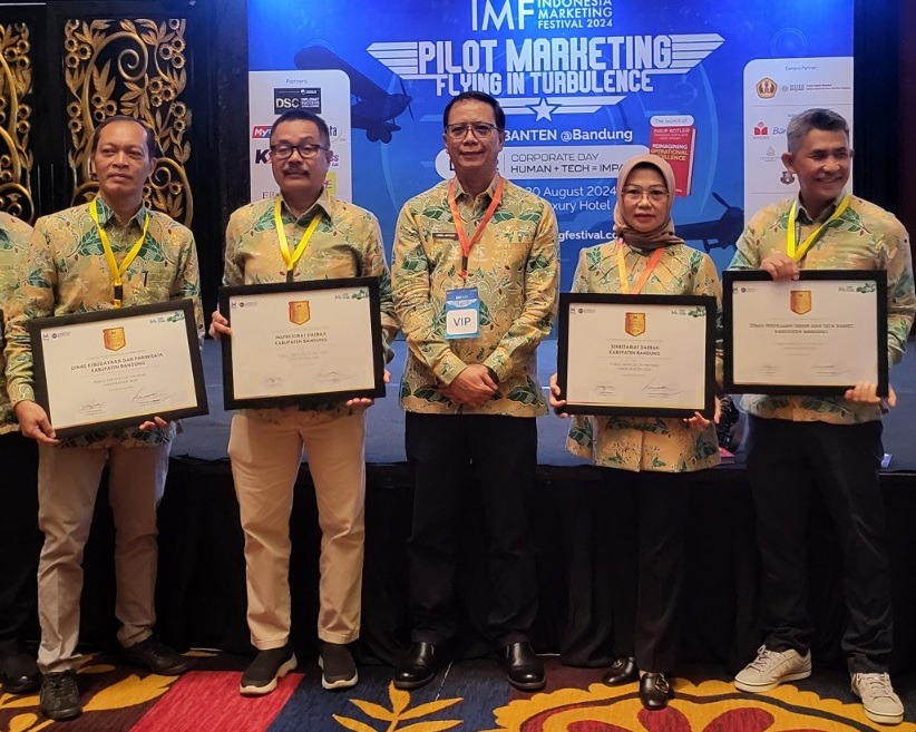 Pemkab Bandung memborong empat penghargaan sekaligus di ajang bergengsi Public Service of The Year Jawa Barat & Banten Award 2024 yang digelar MarkPlus Institute, di Trans Luxury Bandung, Selasa (20/8/2024).