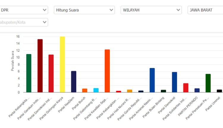 KABARJABAR.net – Hasil penghitungan resmi Komisi Pemilihan Umum (KPU) untuk Pemilu Serentak 2024 Legislatif (Pileg) di wilayah Jawa Barat menunjukkan sementara Partai Golongan Karya atau Golkar berada di posisi teratas.
